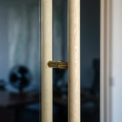 La porte est en verre trempé 8mm d'épaisseur très résistant, garantissant l'insonorisation de la cabine. La poignée est disponible en bois ou en argent.